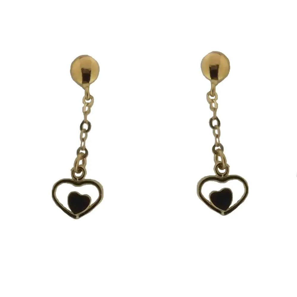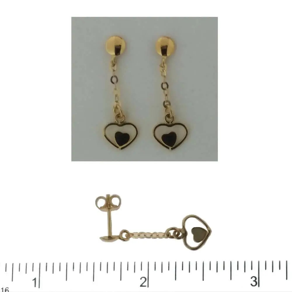 18KT Yellow Gold Polished Open Heart with Heart Center Dangle Earrings L- 1 inch