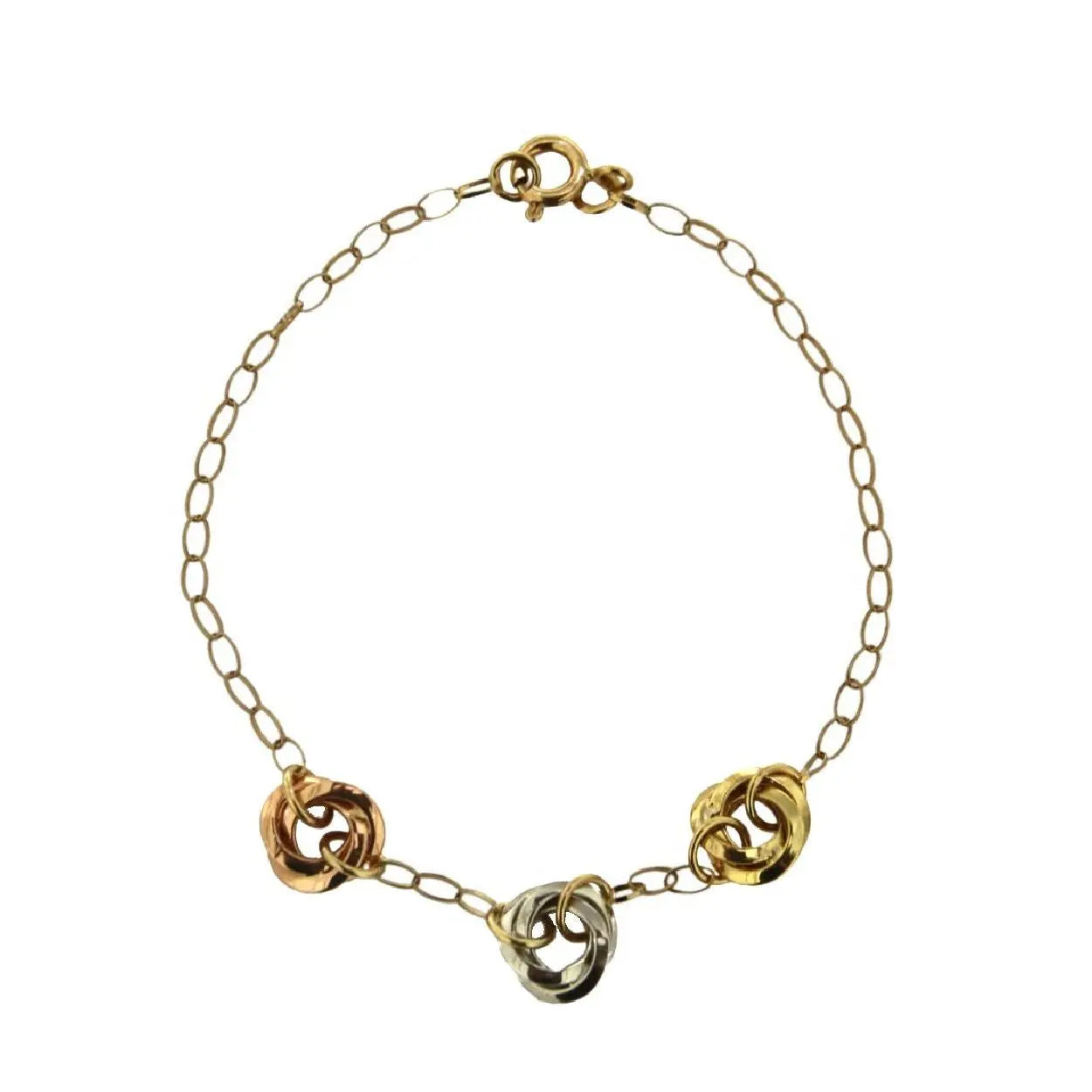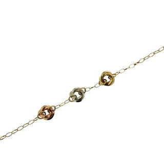 Discover Amalia's 18K Tricolor Gold Knot Bracelet, the perfect Bat Mitzvah gift. This bracelet showcases three elegant, polished knots in rose, white, and yellow gold, adjustable down from 7 inches with a delicate 0.33-inch knot diameter. Crafted with care in Italy, this hypoallergenic piece is ideal for those 12 years and older. Elevate the gift with the matching necklace and earrings from Amalia's collection. Each bracelet is beautifully presented in an exclusive Amalia gift box, making it a memorable and cherished present for any special occasion.