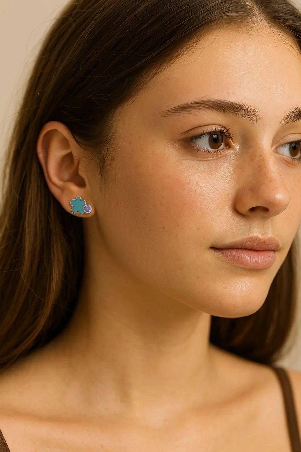 Make a stylish statement with these captivating Sterling Silver Blue Enamel Flower and Lavender Earrings, designed by a talented Spanish designer. These earrings blend a beautiful modern blue enamel flower with a striking lavender zirconia, creating a unique and eye-catching accessory. Perfect for teenagers 13 years old and up, each earring measures 0.43 x 0.33 inches, offering a delicate yet vibrant appeal.