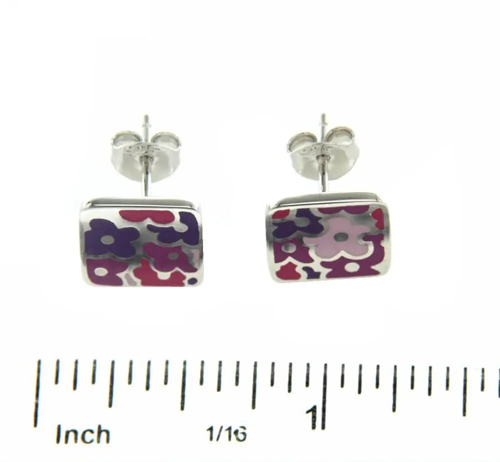 Embrace the perfect mix of style and sportiness with the Sterling Silver Enamel Flowers Lavender Post Earrings, ideal for teenagers. These elegant earrings feature a square design, measuring 0.44 inches, adorned with vibrant lavender, fuchsia, and pink flowers.