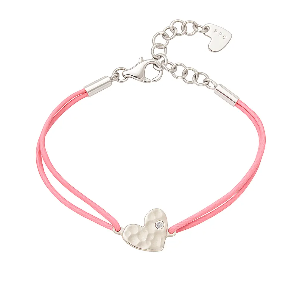 #bracelet #sterlingsilver #hammeredheart #zirconia #giftidea #fashion #teengifts #jewelry #pinkcord #elegantdesign