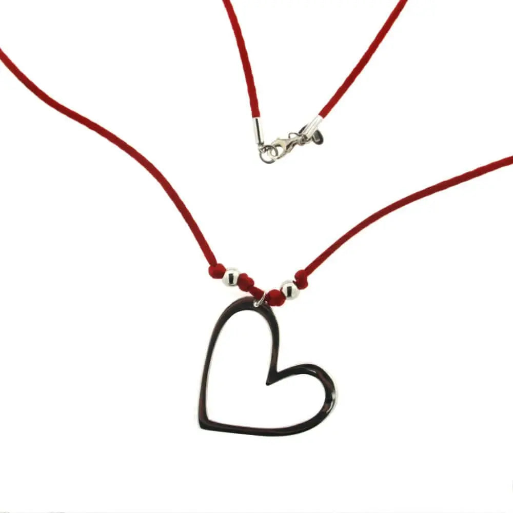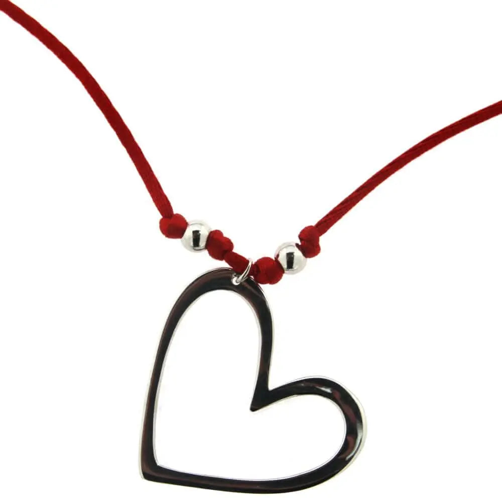 Elevate your jewelry collection with the Sterling Silver Large Open Heart Pendant Red Cord Necklace—a modern masterpiece designed to impress.