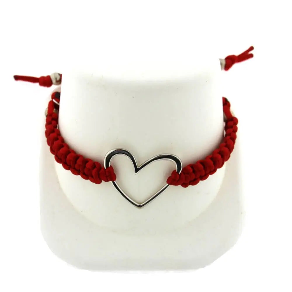 The bracelet features a vibrant red adjustable cord that fits wrists from 5 to 8 inches, ensuring comfort and versatility. Its centerpiece — a large open heart charm crafted from high-quality sterling silver and measuring 0.92 x 1.00 inches — symbolizes love, unity, and style. The minimalist yet striking design pairs beautifully with casual or dressy looks.