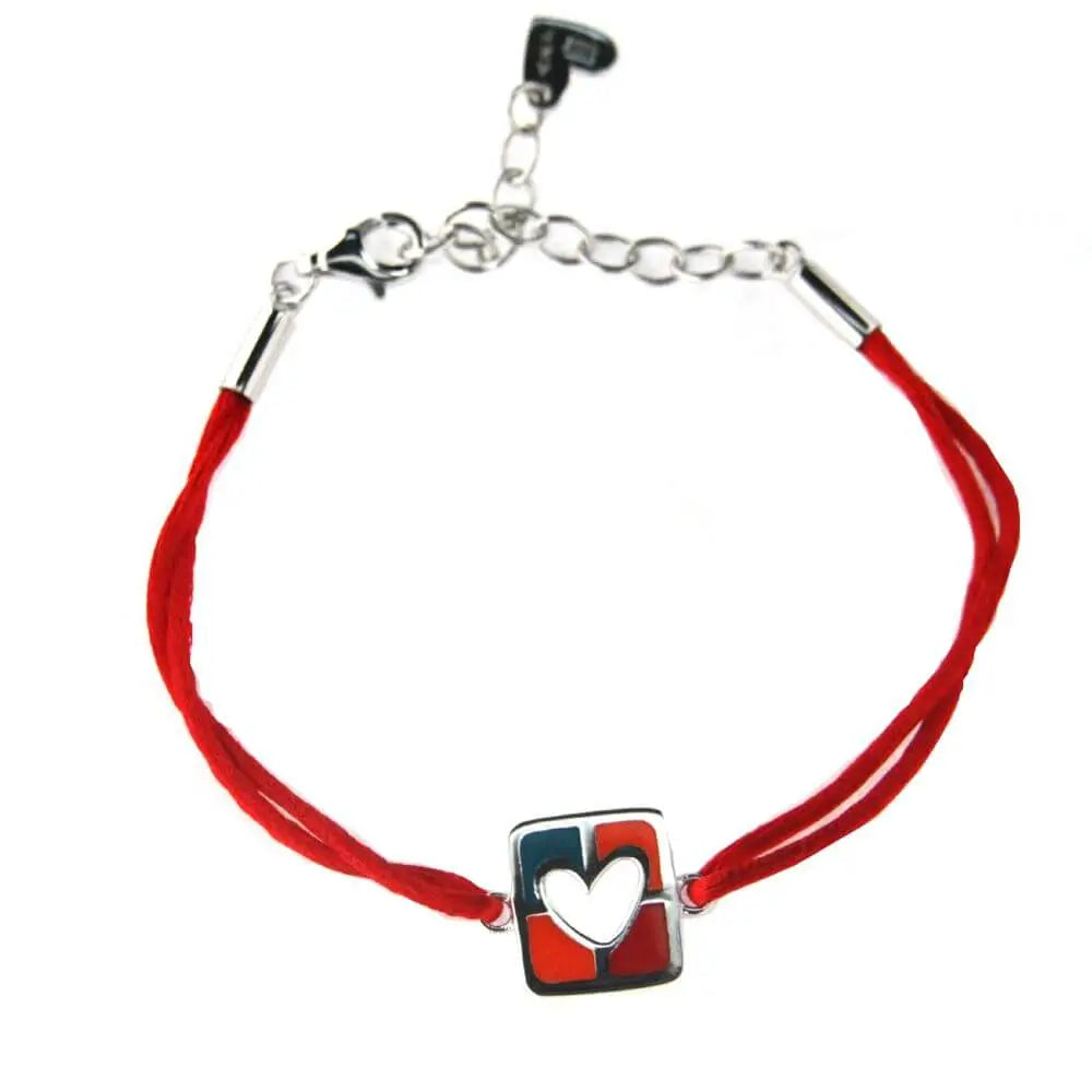 Sterling Silver Rectangle Orange Red and Green cut-out Heart pendant Red Cord adjustable bracelet 7 inches with extra rings starting at 5.50 inches