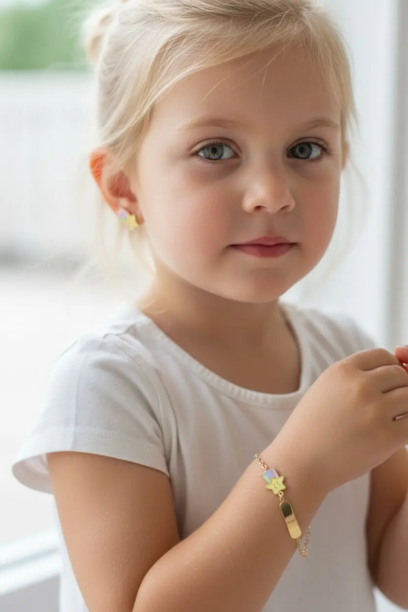 Para um presente coordenado, combine-os com a Pulseira de Identificação Estrela Cadente esmaltada em Ouro Amarelo Maciço 18K (SKU BB0010133). Cada conjunto vem lindamente embalado em uma caixa e sacola de presente Amalia — ideal para aniversários, chá de bebê ou marcos significativos.