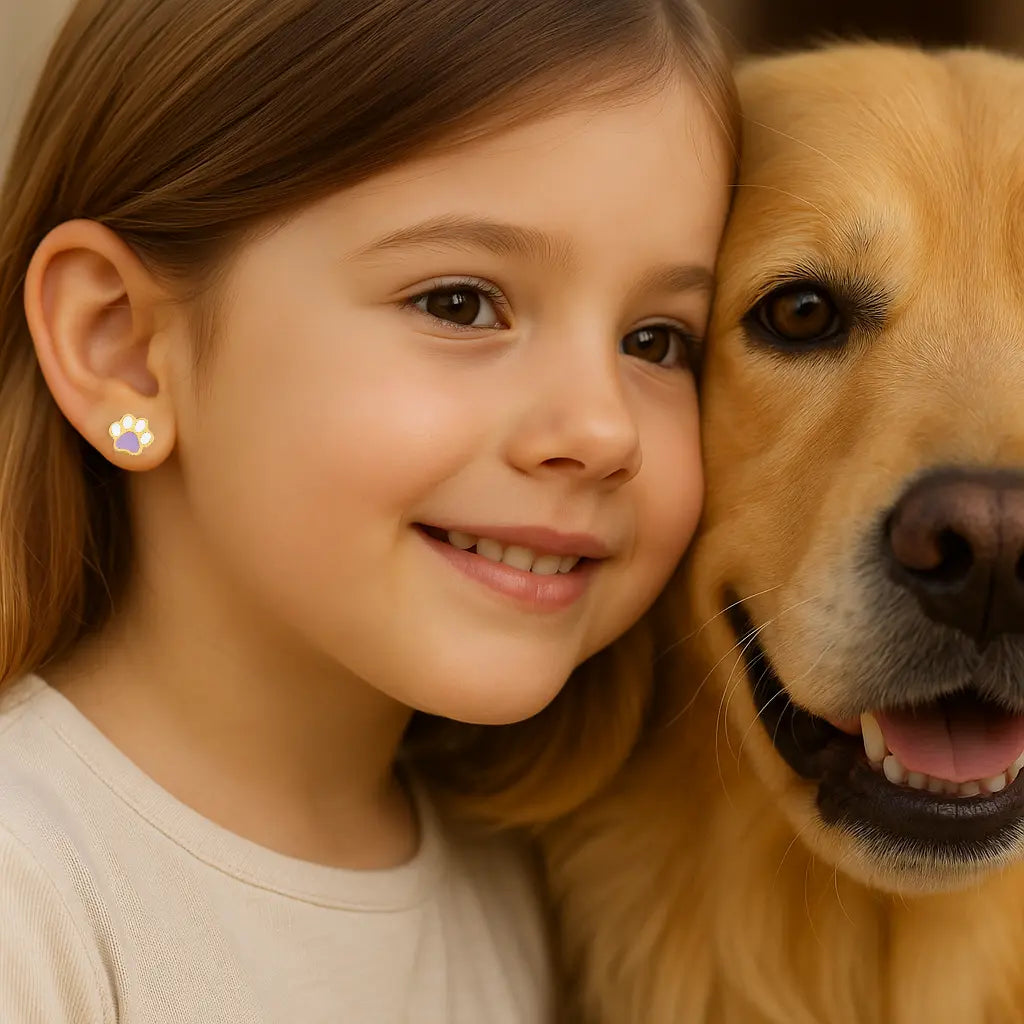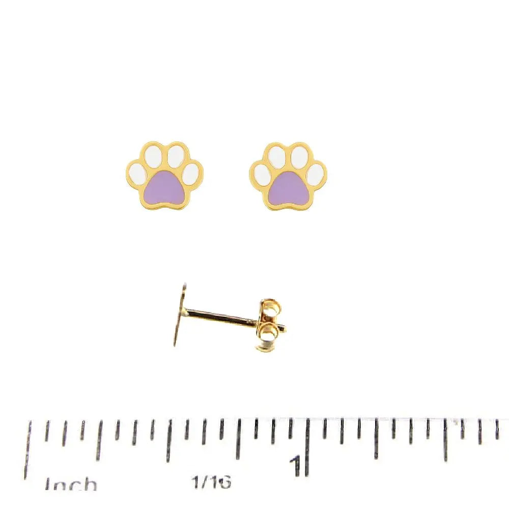 Esses lindos brincos de pino com pata de cachorro em esmalte lilás e branco, feitos em ouro amarelo maciço 18K, certamente farão qualquer menina sorrir. Feitos em ouro amarelo maciço 18K hipoalergênico, os brincos apresentam um belo acabamento em esmalte que adiciona um toque luxuoso. O design de brinco de pino garante conforto e estabilidade, enquanto o delicado desenho da pata é estiloso e apropriado para idades de 3 a 13 anos. Medindo 0,25 x 0,25 polegadas, esses brincos são perfeitos para completar qualquer visual. Chegando em uma caixa e sacola de presente Amalia, são um ótimo presente para qualquer ocasião.