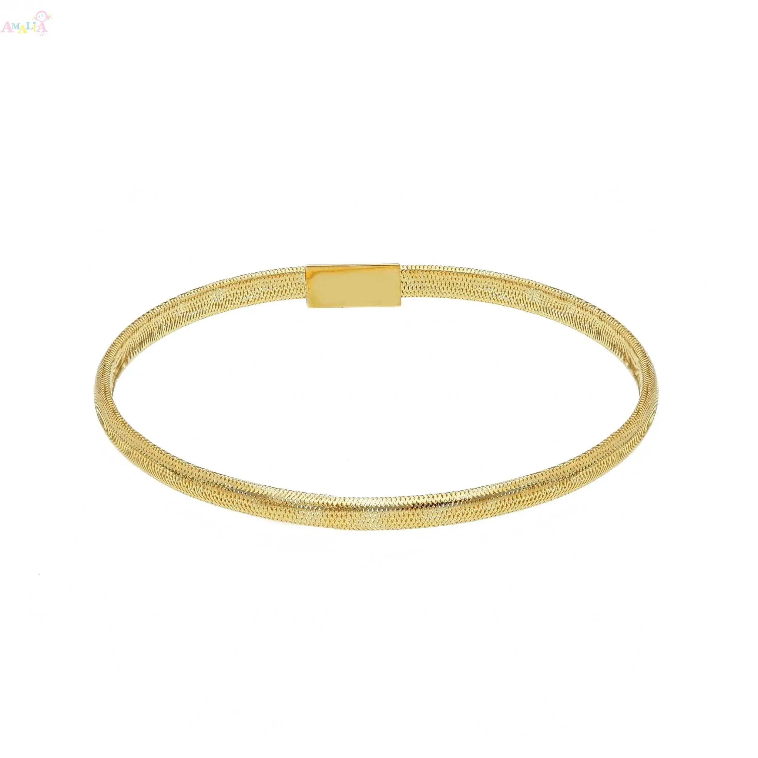 Crafted with modern Italian technology, the bracelet is elastic and clasp-free, allowing it to expand easily to fit over the hand and then return to its original shape. Designed to fit wrist sizes from 6 to 7.5 inches, it combines comfort, flexibility, and beauty in one seamless piece.