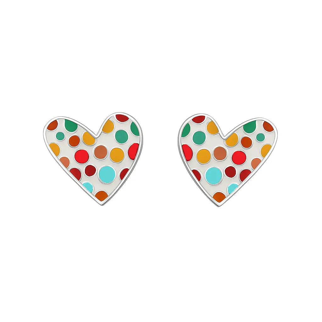 Surpreenda-a com um presente estiloso - nossos Brincos de Prata de Lei com Coração e Esmalte Multicolorido. Projetados para adolescentes a partir de 13 anos, estes brincos apresentam um design em forma de coração adornado com pontos de esmalte polido em cores vibrantes. Medindo 0,47x0,45 polegadas, oferecem um tamanho perfeito para um visual chique e moderno.